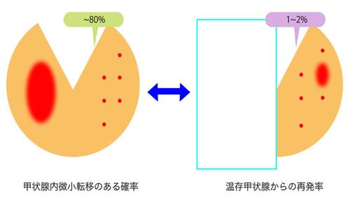 甲狀腺呈蝴蝶狀。即使在一側發現癌癥,也就是說,在蝴蝶的一個翅膀部分,如果回聲在另一側無法發現癌癥,可以選擇不切除另一側。但即使在這種情況下,仍有一些患者可以切除所有甲狀腺。