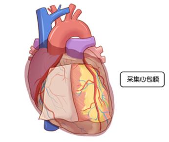 首先,從患者心臟外部采集用來制作主動脈瓣膜的心包膜。心包膜不僅可以用于主動脈瓣、二尖瓣修復,還能用于修復心臟破裂手術等,是個非常方便使用的人體組織。采集心包膜后的心臟包膜缺損部分,通常用人工制作的心臟包膜片填補。