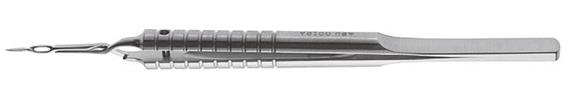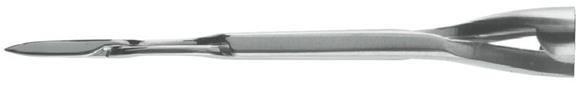 但這個方法也有缺點。如果溝劃得太淺就無法很好地將晶狀體核一分為四,但劃得過深又會刺破角膜。難道就沒有更加簡單可靠的辦法了嗎?大約在27年前的某一時刻,我腦中忽然靈光閃現,想到了另一種切割方法——假如將超聲波震動中的尖細鑷子刺入晶狀體核,然后啪地迅速打開鑷子,核不就擊碎了嗎?
