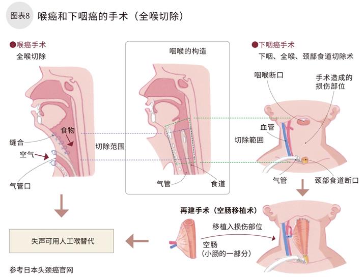 「喉部分切除術」和「下咽部分切除術」,因切除部分喉嚨會有聲音嘶啞的后遺癥,但并不影響日常生活。