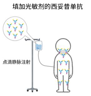 向患者體內(nèi)靜脈注射加入光敏劑的西妥昔單抗