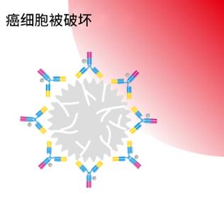 在與癌細胞表面特異蛋白結(jié)合的抗體中加入光敏劑后,靜脈注射到體內(nèi)。在該抗體和體內(nèi)癌細胞結(jié)合后照射近紅外線,將光束送達病變部位。光敏劑被近紅外線照射后發(fā)生化學反應,破壞癌細胞。癌細胞會像氣球一樣一個一個爆破。要想破壞癌細胞,需要光敏劑和近紅外線兩者發(fā)生反應才行。沒有光敏劑,或者不照射近紅外線,都不會引起癌細胞的破損。而且,破損后癌細胞碎片可作為免疫細胞的抗原,可以增強免疫細胞對殘留癌細胞攻擊的能力,也會有治療效果。