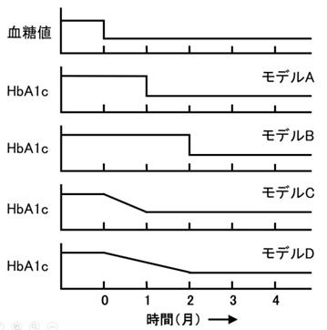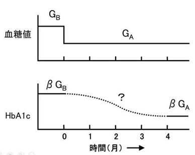 在理工科中進行研究時,通常會先構建一個模型,使用該模型進行思考實驗。那么,對于HbA1c應該建立什么樣的模型,應該進行怎樣的思考實驗那?當患者的血糖逐步改善時,我們考慮建立一個HbA1c變化的模型。