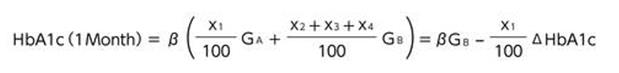 在治療開始前血糖值一直是GB,所以再乘以血紅蛋白糖化因子β應該就可以了。在治療開始后血糖值迅速下降至G A,并維持了4個月,那么治療后第4個月的HbA1c也是乘以β來計算的。
