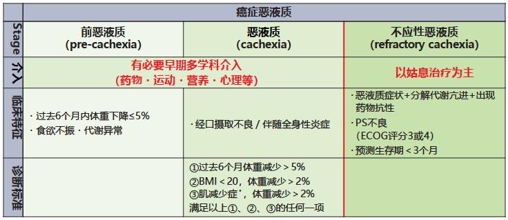 癌癥惡液質的3個階段和早期介入——診斷標準和Stage分類的要點與課題