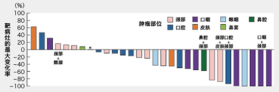 在開始治療的5周內,還有3名(10%)患者發生了導致死亡的嚴重不良事件(腫瘤出血、動脈出血、肺炎)。 這些事件發生在最后一次治療后19天以上,似乎主要與腫瘤反應或腫瘤侵犯血管有關,不被認為是治療本身導致的不良事件。