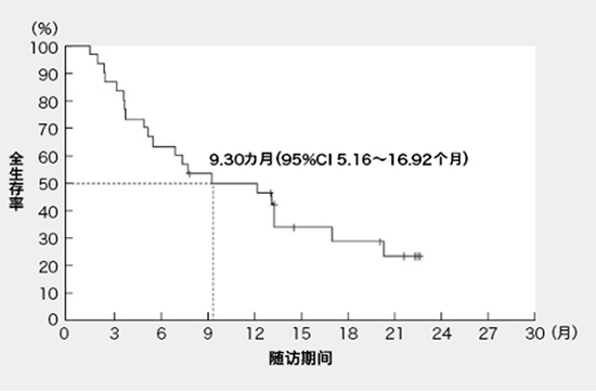 中位總生存期(OS)為9.30個月(95% CI:5.16-16.92個月)。