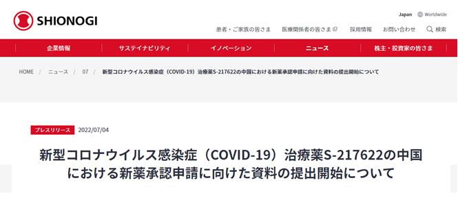 鹽野義制藥公司研發(fā)的治療新冠病毒的口服藥物。藥物開發(fā)編號(hào):S-217622