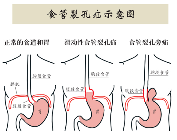 名詞解釋:裂孔疝,又稱食管裂孔疝,是指腹腔內臟器(主要是胃)通過膈食管裂孔進入胸腔所致的疾病,90%以上的膈疝都是裂口疝。