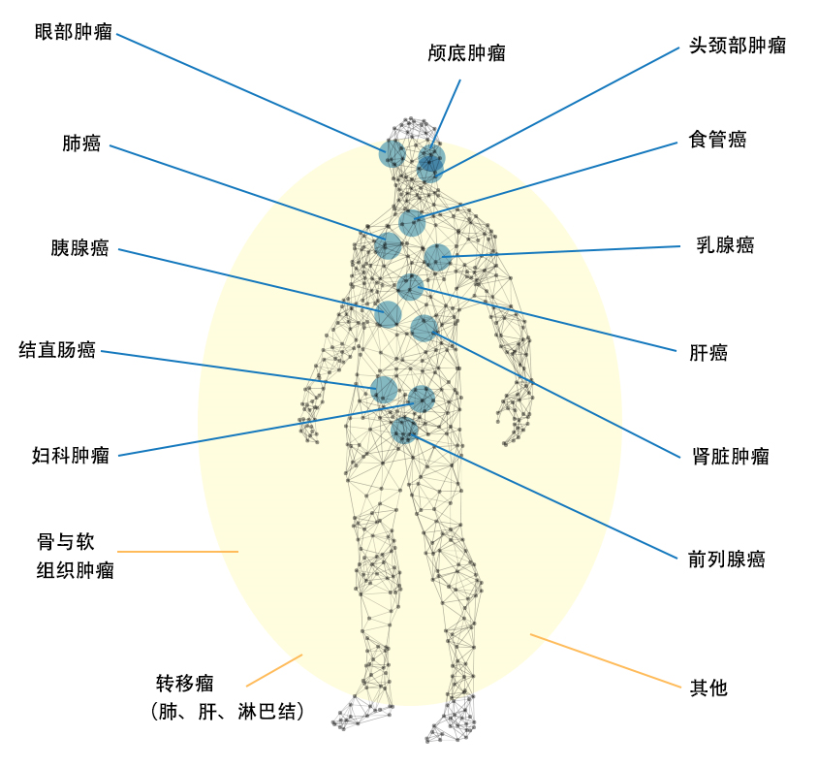 截至目前,日本QST醫院已經開展重離子治療近30年,擁有世界上重離子治療最豐富的治療經驗。可以為骨與軟組織肉瘤、頭頸部腫瘤、前列腺癌、肺癌、食道癌、肝癌、胰腺癌、腎癌、子宮癌、轉移性肝癌、轉移性肺癌等多種腫瘤患者提供治療,累計重離子治療例數世界第一。各類腫瘤的治療成績均達到了80%左右的5年控制率。