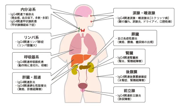 (圖)IgG4相關疾病中出現病變的主要器官和癥狀