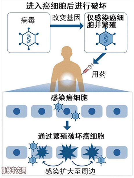 病毒抗癌療法利用的是被改變基因的病毒。不斷增加的病毒遍布全身,對(duì)轉(zhuǎn)移和復(fù)發(fā)的癌癥也有效果。與“Opdivo”等免疫療法一起,被期待成為繼手術(shù)、抗癌藥和化療之后的第4種候選療法。