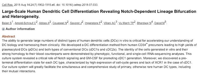 此外,該研究還突出了notch信號的作用,notch信號是一種生物學途徑,在從蒼蠅到人類的多種生物體的發展中起著關鍵作用,并且對于產生一種特定類型的樹突狀細胞(即cDC1)至關重要,而這種細胞是研制腫瘤疫苗的最佳樹突狀細胞。