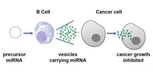 在近期的國際雜志Scientific Reports上的研究報告中,來自加利福尼亞大學的科學家們成功將B細胞轉化成了一種特殊的“工廠”,其能幫助組裝并且分泌含有microRNAs的囊泡或囊袋結構,一旦癌細胞陷入其中,這些小型片狀遺傳物質就會抑制促進腫瘤生長的基因進行表達;利用這種方法來治療患乳腺癌的小鼠或許就能讓腫瘤發生明顯的萎縮。