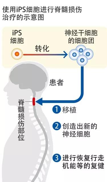 計劃中,將把iPS細胞轉化為神經干細胞,移植至損傷后2周至4周的“亞急性期”患者體內。對于傷處以下均失去知覺及運動機能、處于“完全麻痹”狀態的傷情最嚴重患者,則目標恢復其神經的功能。