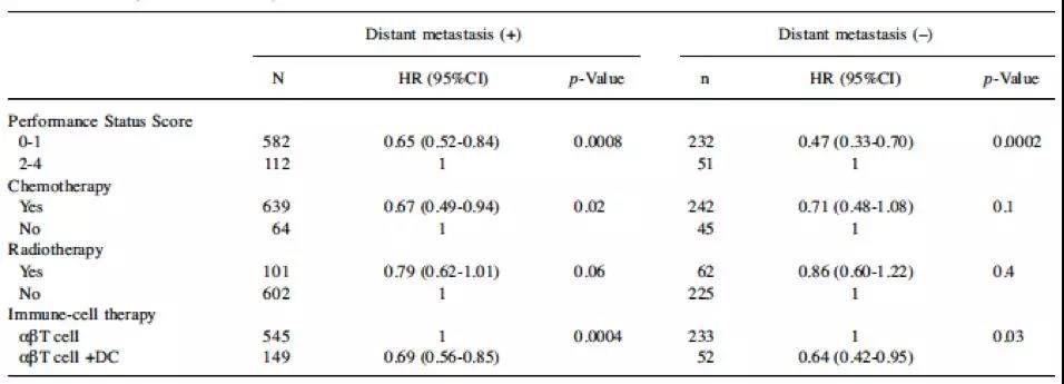 ?免疫細胞療法和化療聯合,與單用化療組別對比,統計結果有臨床意義(P=0.0023)。