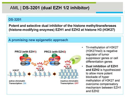 [1]. Daiichi Sankyo's EZH1/2 Dual Inhibitor Valemetostat (DS-3201) Receives SAKIGAKE Designation for Treatment of Patients with Relapsed/Refractory Peripheral T-Cell Lymphoma from Japan MHLW. Retrieved April,9, 2019,