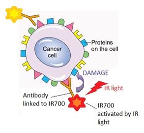 作為一款光免疫療法,Rakuten的ASP-1929由西妥昔單抗(cetuximab)與IRDye700DX構成的抗體偶聯藥物(ADC)。它的抗體部分靶向表皮生長因子(EGFR)。EGFR表達于多種類型的實體瘤細胞表面,包括頭頸部鱗狀細胞癌、食道癌、肺癌、結腸直腸癌、胰腺癌和其它癌癥。