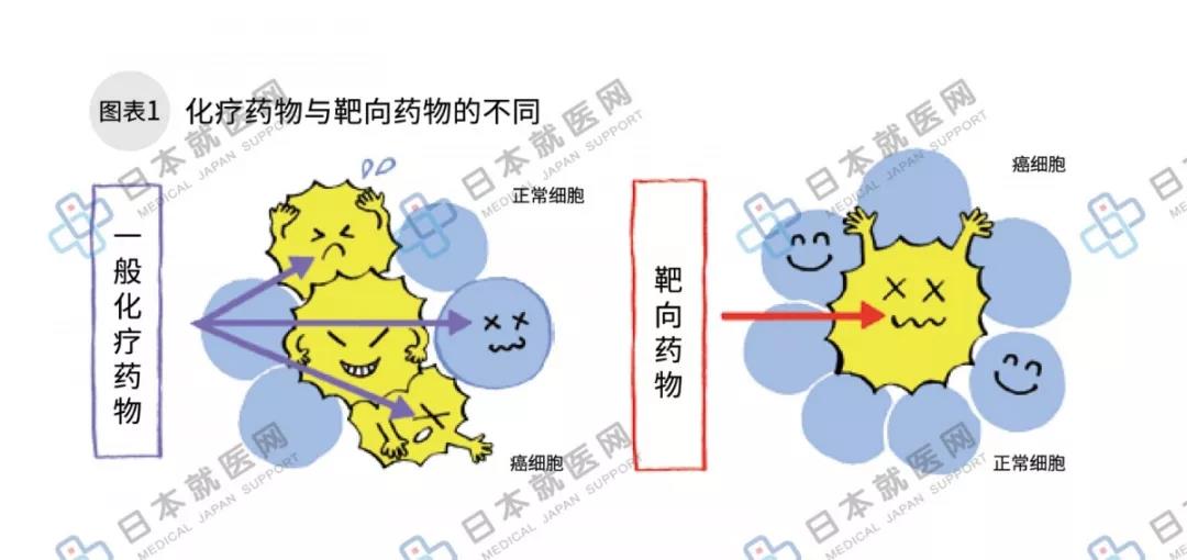 癌細(xì)胞具有持續(xù)增殖的性質(zhì)。醫(yī)學(xué)和遺傳工程學(xué)的進(jìn)步使人們發(fā)現(xiàn)了各種各樣的分子(蛋白質(zhì)、基因)與癌的增殖有關(guān)。分子靶向藥物狙擊這些特定的分子,妨礙或破壞癌細(xì)胞的增殖。相對(duì)化療藥物不僅破壞癌細(xì)胞也破壞正常細(xì)胞,靶向藥物的破壞癌細(xì)胞的聚焦能力更強(qiáng)(圖表1)。人們開發(fā)的首款靶向藥物是曲妥珠單抗,于1998年在美國(guó)首先得到認(rèn)可,用于HER2蛋白陽(yáng)性的乳腺癌轉(zhuǎn)移復(fù)發(fā)病人。這款藥物在開發(fā)過程中多次中斷,后來在患者援助社會(huì)團(tuán)體的支持下誕生。后來發(fā)現(xiàn),HER2陽(yáng)性的乳腺癌病人在術(shù)后用該藥和化療一樣,可以有效控制復(fù)發(fā)。繼而在2001年美國(guó)又承認(rèn)了用于治療慢性骨髓行白血病(CML)的靶向藥物伊馬替尼。更多的CML的病人可以正常工作、家務(wù)、育兒了。