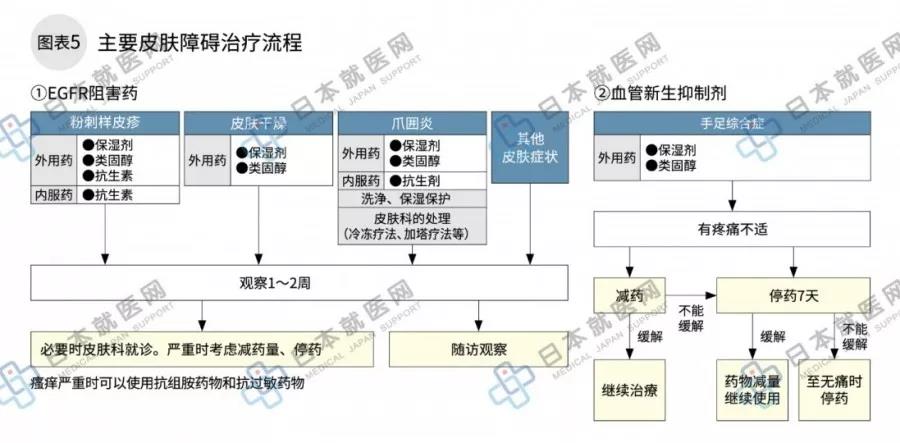 容易引起皮膚障礙的靶向藥物有2類,他們的處理方法完全不同。①EGFR抑制劑(阿法替尼、厄洛替尼、吉非替尼、奧西替尼、帕尼單抗、拉帕替尼);②血管新生抑制劑(索拉菲尼、樂伐替尼、舒尼替尼、瑞格非尼)。