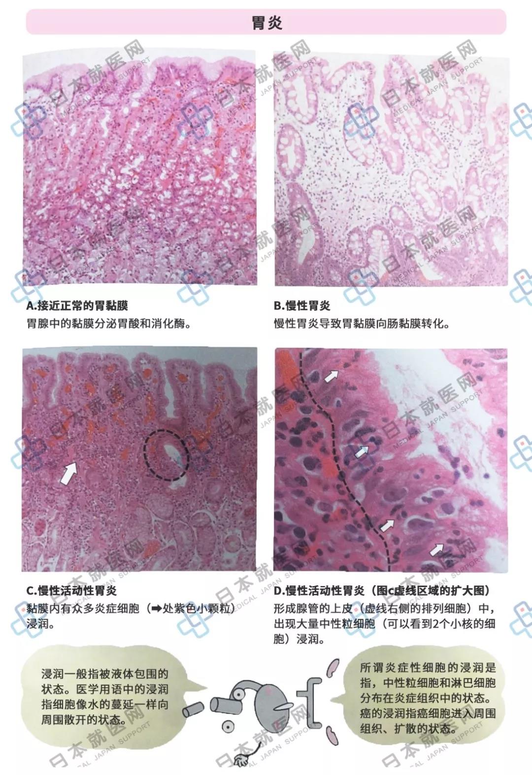 慢性胃炎的第一個關鍵詞,與慢性扁桃炎、慢性膀胱炎一樣:“炎癥的反復”。胃分泌胃酸來溶解食物,粘液保護著胃壁不被胃酸溶解。發生急性胃炎的多數因素是黏液分泌減弱,反復發生急性胃炎時,上次炎癥還沒有治好又發生新的炎癥,最后胃就不能恢復原狀了。慢性炎癥處于一邊傷害一邊修復的狀態,慢性胃炎的發展結局是胃上皮的腸化生,導致胃粘膜萎縮。
