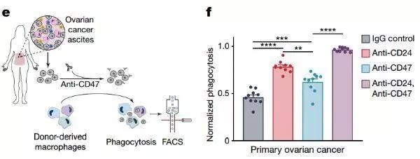 另一個有趣的發現是CD24信號常常以CD47信號的互補方式運作。有些癌癥,比如血癌,似乎對cd47信號傳導阻滯非常敏感,但對cd24信號傳導阻滯卻不敏感,而在其他癌癥,比如卵巢癌,情況正好相反。這增加了一種希望,即大多數癌癥會通過阻斷這些信號中的一個而容易受到攻擊,當不止一個"不要吃我"信號被阻斷時,癌癥可能更容易受到攻擊。