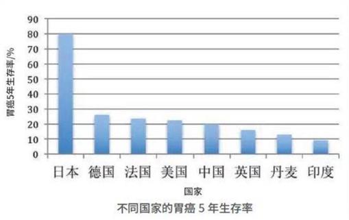 面對胃癌,中國、美國都輸了,日本胃癌的5年生存率可以達到80%,甩了其他國家好幾條街!