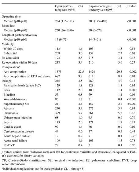 研究者從日本國家臨床數(shù)據(jù)庫提取了28,160例ASA-PS等級≥3的胃癌患者的數(shù)據(jù),這些患者于2013年1月至2017年12月期間接受了胃遠端或全胃切除術(shù)。該項研究旨在確定LG在ASA-PS分級≥3的患者中的可行性。