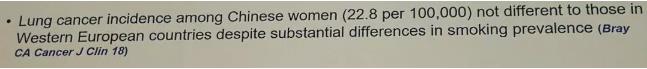 我們?cè)谟懻摲伟┰\斷與治療的時(shí)候,不知有沒有發(fā)現(xiàn)中國(guó)的女性肺癌患者不斷增多,但我們也知道,中國(guó)女性的吸煙率還是比較低,這是什么原因呢?