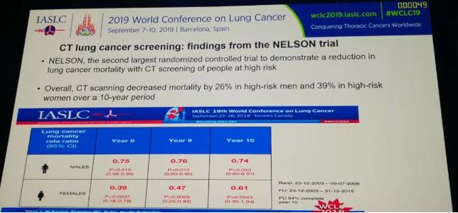 最后,NELSON研究顯示,采用CT篩查可以將男性高危人群的死亡率降低26%,而女性則能得到39%的死亡率下降。