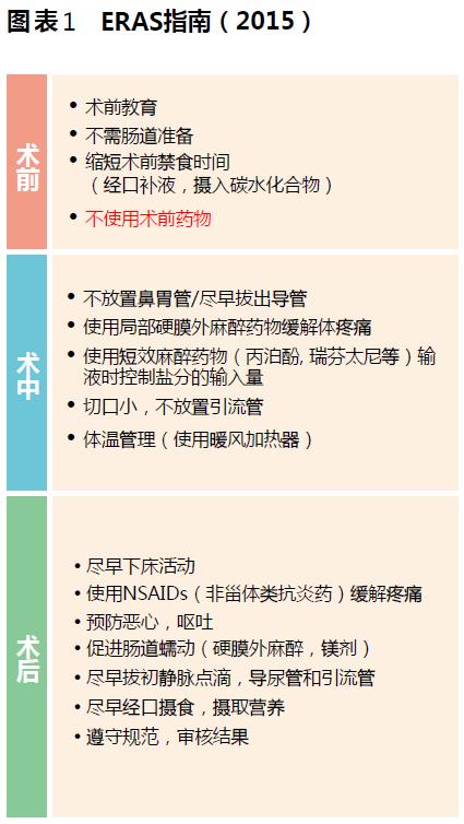 圖表1就是2005年北歐發(fā)表的指南原著。而志田教授強(qiáng)調(diào):ERAS的落實(shí),必須結(jié)合每個(gè)醫(yī)療機(jī)構(gòu)的具體情況。