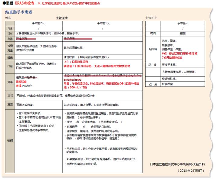 日本國(guó)立癌癥研究中心中央病院于2014年2月17日開始為大腸外科手術(shù)患者啟用了ERAS模式(加快康復(fù)程序)。