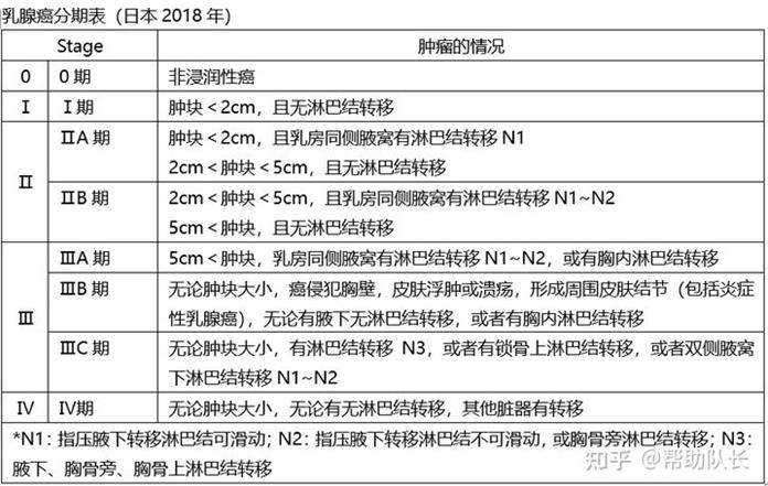 衡量乳腺癌進展程度的分期(Stage)根據腫瘤的大小、乳房內的擴散程度、淋巴結轉移情況、遠處轉移的情況來評定。