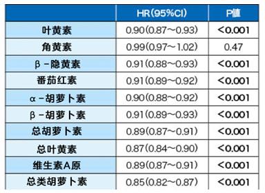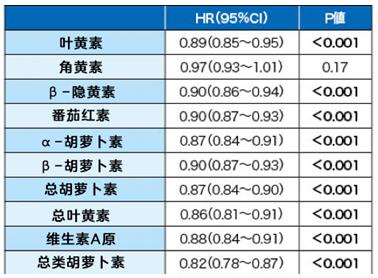 表1. 血清總類胡蘿卜素水平上升25%與全因死亡率的關(guān)系