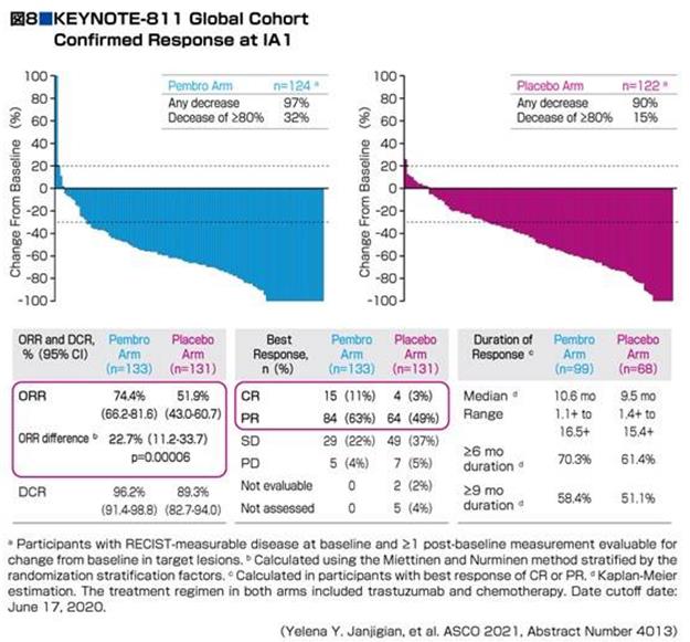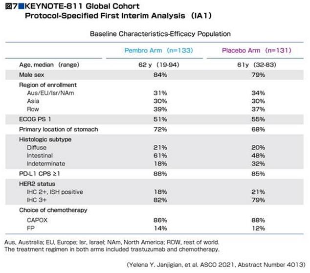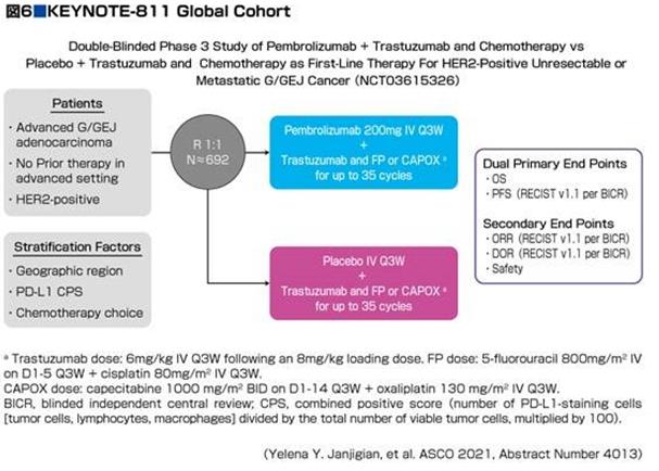 KEYNOTE-811研究是一項多中心、隨機、雙盲、安慰劑對照試驗,對象是不可切除或轉移的HER2陽性晚期胃和胃食管結合部腺癌患者,HER2陽性,之前未接受系統治療。