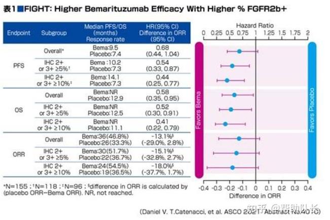 截至目前,臨床試驗隨訪患者的中位數為12.5個月,無論FGFR2b在腫瘤細胞中占比,用藥組總生存期的中位數達到19.2個月,安慰劑組為13.5個月。其中FGFR2b在腫瘤細胞中超過10%的患者,用藥組的OS為25.4個月,療效顯著。