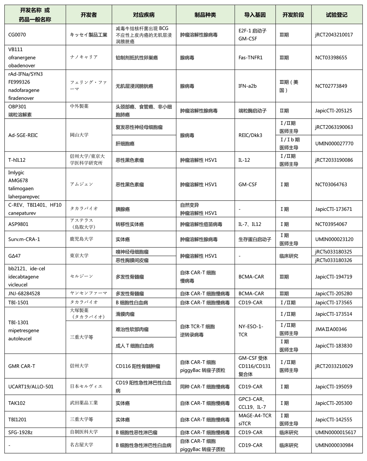 2019年諾華制藥的CD19嵌合抗體CAR-T療法在日本上市,除了其治療濾泡性淋巴瘤的完全緩解率達到65%,總緩解率達到83%的高有效率受到關注,高達3,350萬日元的治療費用也令人結舌。2021年6月日本政府承認了東京大學開發的GΔ47溶瘤病毒治療腦腫瘤,但嚴格限制了使用條件和藥物許可時間。這是世界上第一個正式上市的抗腫瘤病毒療法。