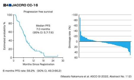 結(jié)直腸癌治療指南推薦:對于RAS野生型患者,雙藥+抗EGFR抗體作為一線治療,雙藥+血管生成抑制劑作為二線治療,血管生成抑制劑可以是貝伐單抗、雷莫蘆單抗或阿柏西普。但這并無前瞻性數(shù)據(jù)。而在JACCRO CC-16試驗(yàn)中,F(xiàn)OLFIRI +雷莫蘆單抗的結(jié)果在化療 + 抗 EGFR 抗體治療的 RAS 野生型結(jié)直腸癌中得到了積極評價。