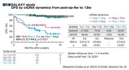 另外,該研究還對術(shù)后4 周時ctDNA 呈陽性的183 名在12 周時的ctDNA 信息進(jìn)行了分析。結(jié)果,術(shù)后接受輔助化療的患者中,有68%的人在 6 個月時ctDNA轉(zhuǎn)陰,而未接受術(shù)后輔助化療的患者為10%,風(fēng)險比為 9.3(95% CI:4.6-18.9),p <0.001 ,差異顯著。多變量分析提示,未接受術(shù)后輔助化療是復(fù)發(fā)的重要因素。