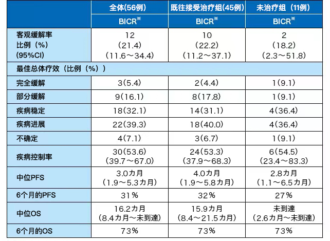 主要終點:先前接受過化療患者的客觀緩解率(ORR)。