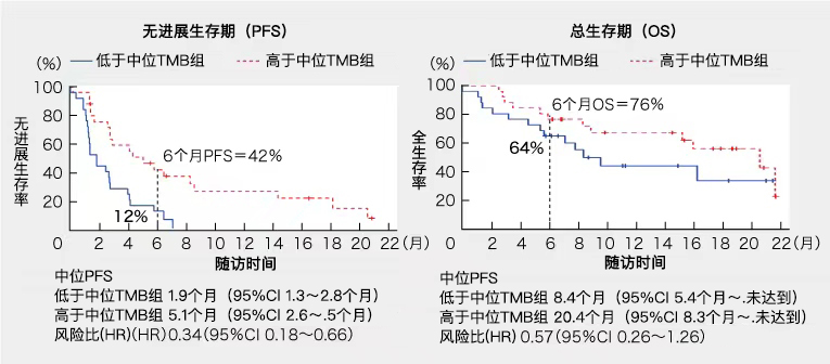 高于中位TMB患者的ORR,PFS和OS均優于低于中位TMB的患者。(如表2)。